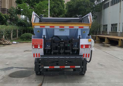 | 其他 | 1.样车仅选用轴距3190mm,该车型可选装ETC车载装置;2.箱体材质冷轧板ST12,整备质量2670kg,选装轻量化箱体,材质铝合金6063,整备质量2500kg;3.储能装置种类/生产企业 :三元镍钴锰酸锂复合蓄电池/深圳市比克动力电池有限公司;4.电机种类/电机型号/生产企业:永磁同步电机/TZ190XSZ/成都中车电机有限公司,电机额定功率40kW,峰值功率80kW,电机控制器型号/生产企业:KTZ37X32S-02Z/重庆凯瑞动力科技有限公司;5.ABS型号/生产企业:YF8/武汉元丰汽车电控系统有限公司;6.专用装置:上料机构和无泄漏箱体改装,实现垃圾收集作业的功能. | ||