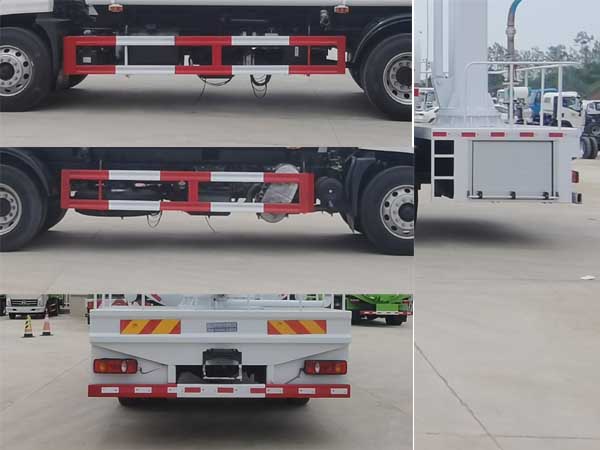 | 其他 | 随底盘选装驾驶室。侧防护材料Q235,螺栓连接;后防护装置材料为Q235,焊接连接,截面尺寸为:120×50(mm),离地高度为:500(mm);整车长/轴距/前悬/后悬(mm)对应关系:7910/3950/1400/2560,7910/3950/1430/2530,8360/4500/1400/2460,8360/4500/1430/2430,8560/4700/1400/2460,8560/4700/1430/2430,8800/4500/1400/2900,8800/4500/1430/2870,9000/4700/1400/2900,9000/4700/1430/2870; ABS型号/生产厂家:3631010-C2000/东科克诺尔商用车制动系统(十堰)有限公司,ABS 8/东科克诺尔商用车制动系统(十堰)有限公司,4460046450/威伯科汽车控制系统(中国)有限公司;该车专用装置主要是罐体和喷雾装置,用于降低空气中的灰尘,雾霾及散颗粒物料表面封尘.选装外观及后尾部样式。选装ABS型号/生产厂家:J ABS/焦作博瑞克控制技术有限公司。 | ||