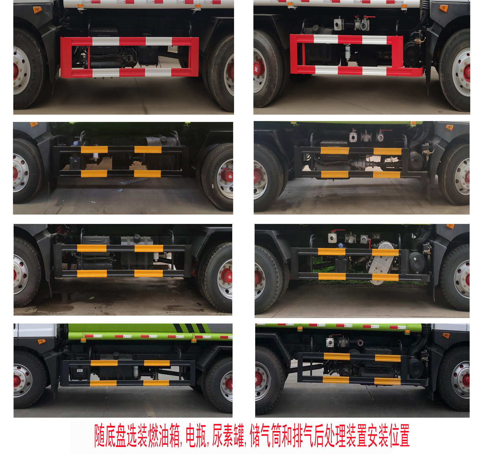| 其他 | 随底盘扩展驾驶室及选装燃油箱,电瓶,尿素罐,储气筒和排气后处理装置安装位置,选装雾炮样式;罐体有效容积10.5立方米,罐体尺寸:4250×2300×1450(mm);ABS系统生产厂家/型号:焦作博瑞克控制技术有限公司/JABS;侧防护材料Q235,连接方式焊接连接,后防护材料Q235,焊接连接,后防护截面高度尺寸140mm,截面宽度尺寸50mm,下边缘离地高度430mm; 该车主要装置是罐体和喷雾机,用于降低空气中的灰尘,雾霾等现象.仅采用底盘3950mm和4500mm轴距改装。 | ||