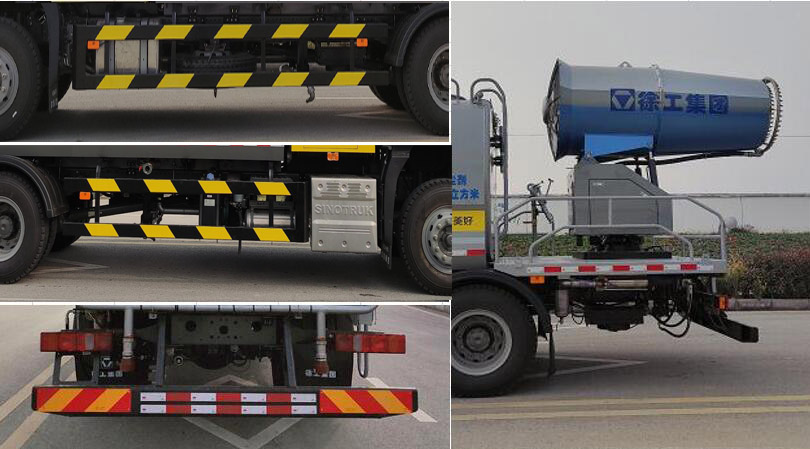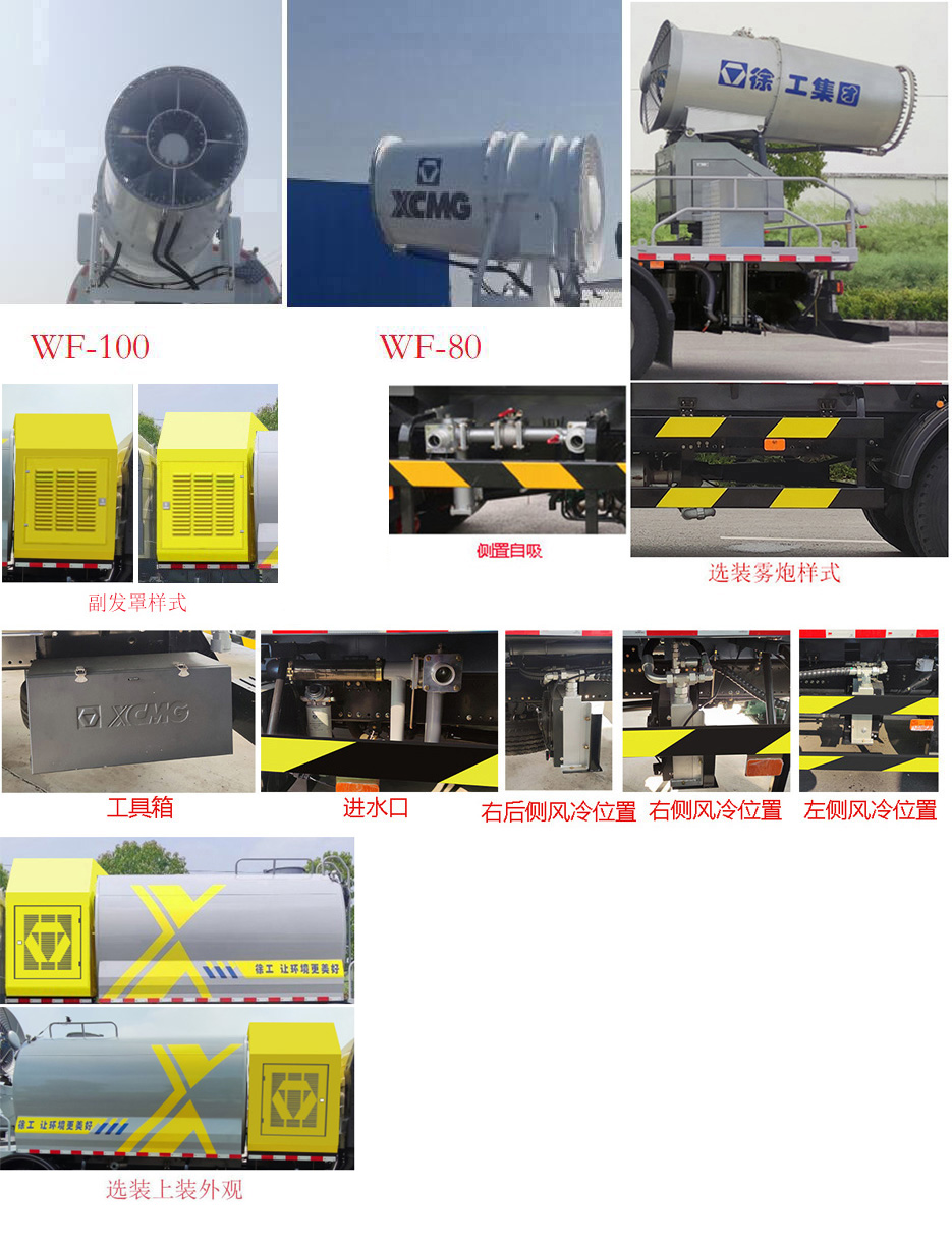ABS系统型号为446 004 6300,生产企业为威伯科汽车控制系统(中国)有限公司.随底盘选装普通、半高顶驾驶室,选装前置排气结构,选装消声器,选装昼间行驶灯,可选装油浴式空滤器,随底盘选装限速装置,限速79km/h或89km/h.该车专用装置为喷雾系统装置、储液箱,主要用于道路、广场或固定场所除霾降尘等作业;其他说明:罐体有效容积8.4立方米,罐体尺寸(长×宽×高)(mm)为:3460×2440×1750,装运介质为抑尘剂,密度为800kg/m3;仅选用5100mm轴距;1、选装WF-100雾炮时:车辆的后伸(mm)/长度(mm)/整备质量(kg)/高度(mm)对应关系为:530/9690/11360/3620 ;2、选装WF-80雾炮时:车辆的后伸(mm)/长度(mm)/整备质量(kg)/高度(mm)对应关系为:410/9570/11080/3640;3、选装PWY100A雾炮时:车辆的后伸(mm)/长度(mm)/整备质量(kg)/高度(mm)对应关系为:630/9790/10820/3555;4、选装PWD80A雾炮时:车辆的后伸(mm)/长度(mm)/整备质量(kg)/高度(mm)对应关系为:330/9490/10484/3165;5、选装PWD100A雾炮时:车辆的后伸(mm)/长度(mm)/整备质量(kg)/高度(mm)对应关系为:586/9746/10894/3478;选装上装外观、侧置自吸、工具箱、进水口、风冷安装位置.侧面防护装置材质为Q355,连接方式为螺栓连接;后防护装置材质为Q355,连接方式为螺栓连接;后部防护装置的断面尺寸为180×60mm,离地高度为430mm; |
