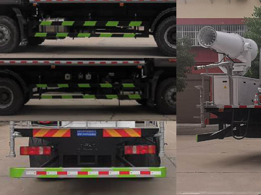 | 其他 | 选装前面罩外观,选装脚踏板结构;仅采用4700mm和4500mm轴距底盘;罐体有效容积12.6立方米;罐体外形尺寸(长度×长轴×短轴)(mm): 5000×2350×1450;侧防护材料Q235,螺栓连接;后防护装置材料为Q235B,焊接连接,断面尺寸为:140×80(mm),离地高度为:460(mm);ABS系统型号为446 004 6300,生产企业为威伯科汽车控制系统(中国)有限公司;该车可选装限速装置,限速89km/h;专用装置主要是罐体和喷雾机,用于抑尘降霾. | ||