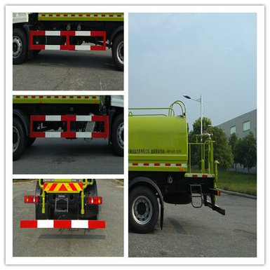 | 其他 | 1.专用装置为罐体和水泵,主要用于道路洒水和园林绿化;2.罐体运输介质:水,密度1000千克/立方米,罐体有效容积:10.8立方米,整车外形尺寸长/轴距/罐体外形尺寸(长×长轴×短轴)对应关系:8580/4700/5000×2200×1300,8380/4500/5000×2200×1300,8080/4200/4300×2250×1450;3.选装驾驶室,选装喷雾装置,可不选装LED箭头指示灯;4.侧.后防护采用Q235材质,连接方式为螺栓连接;后下部防护截面尺寸为(宽×高)53×120(mm),离地高度480mm;5.ABS型号/生产厂家:3631010-C2000/东科克诺尔商用车制动系统(十堰)有限公司,ABS 8/东科克诺尔商用车制动系统(十堰)有限公司, 4460046450/威伯科汽车控制系统(中国)有限公司. | ||