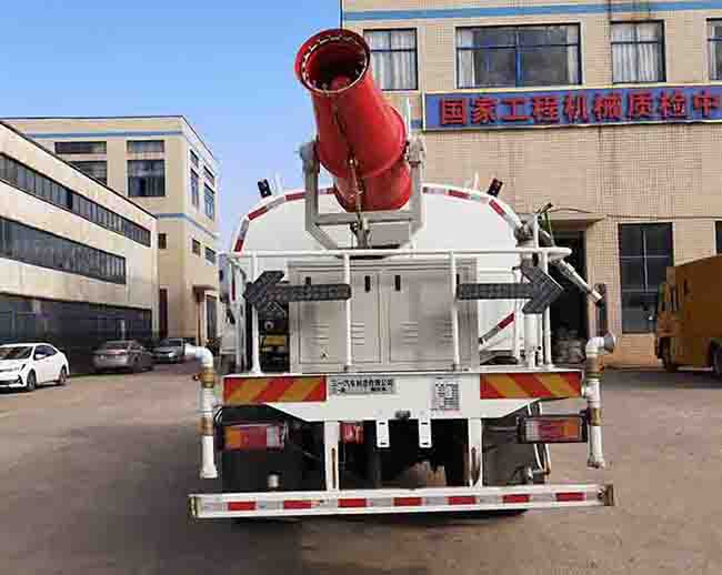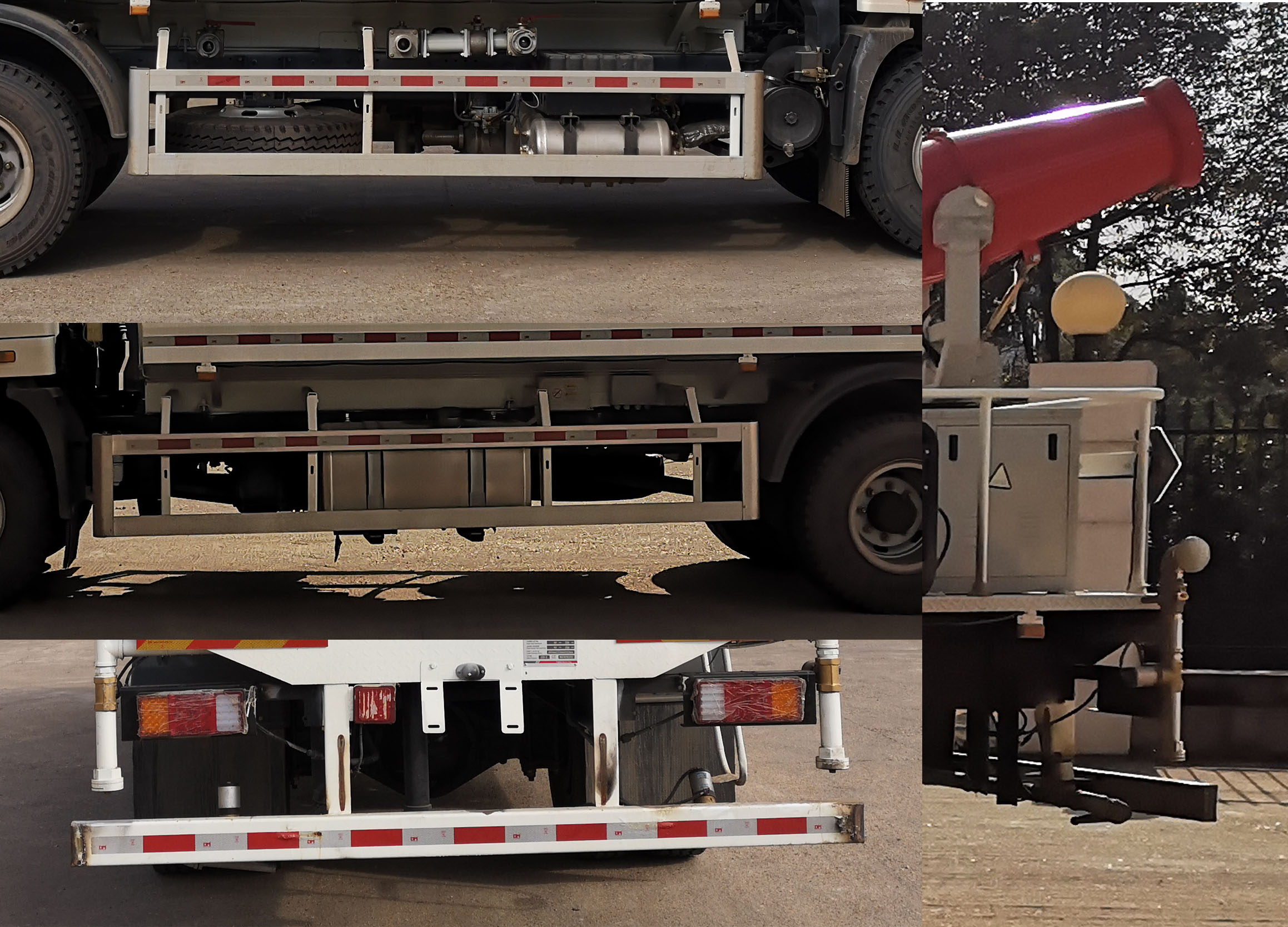 | 其他 | 该车装有水罐、水路系统、喷洒系统等装置用于洒水,清洗作业.罐体有效容积为11.18立方米,介质:水,罐体尺寸(长度×长轴×短轴)(mm)4700×2300×1500。随底盘选装前围饰件;选装不安装水泡、鸭嘴喷洒;安装前水炮时前伸650mm对应整车长9100mm;选装罐箱样式.侧面防护横梁材质为铝合金,纵梁材质为Q235;后下部防护材质为Q235的板材,断面尺寸为120mm×50mm,离地高度为500mm,连接板材质为Q235;侧面防护装置为螺栓连接,后下部防护装置为螺栓+焊接连接。ABS型号:CM4XL-4S(4S/4M),生产厂家:广州科密汽车电子控制技术股份有限公司。 | ||