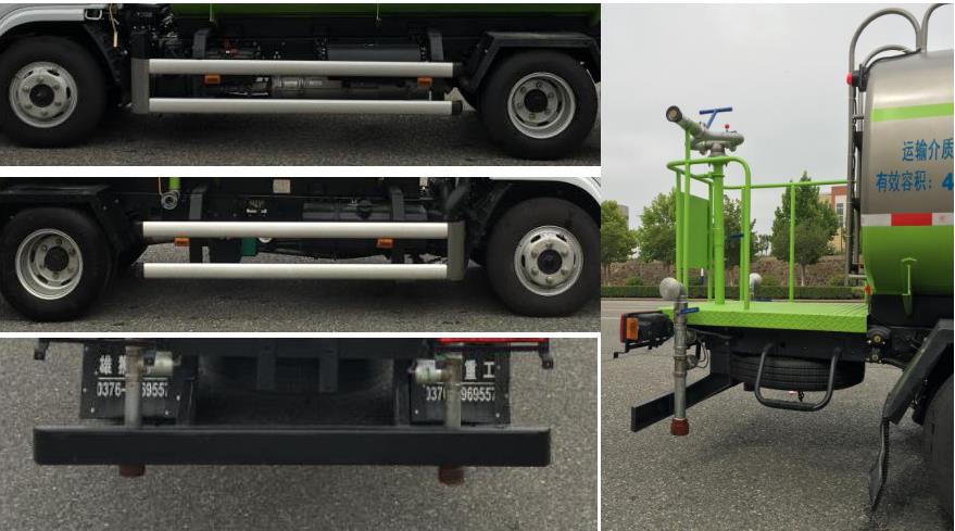 | 其他 | 1,该车仅选用3308mm轴距;2,运输介质:水;介质密度:1000千克/立方米,罐体有效容积:4立方米.罐体外形(长轴×短轴×长)(毫米):1600×1160×3150.3.侧防护材料材质:铝合金,与罐体采用螺栓连接; 后防护材料材质:Q235.螺栓连接,后防护截面尺寸:100×55毫米,离地高度330毫米.4,ABS型号为ABS/ASR-24V-4S/4M,生产厂家为襄阳东风隆诚机械有限责任公司.5,随底盘选装驾驶室.6,该车功能:用于洒水和园林绿化;主要专用装置:罐体。 | ||