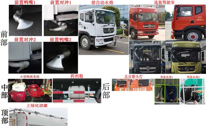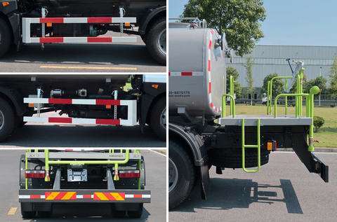 | 其他 | 该车选用3950mm底盘轴距;该车装有水罐、水路系统、清洗工作装置、作业平台、控制系统,用于洒水,清洗作业;罐体外形尺寸(长轴×短轴×长度)(mm):2390×1415×3835;罐体有效容积9.6立方米;选装前自动水炮时,前伸935mm,整车长8545mm;侧面防护装置材料为Q23**,连接方式为螺栓连接,后防护装置材料为Q34**,与车辆连接方式为螺栓连接;后部防护装置的断面尺寸为240×65mm,离地高度为460mm;该车可选装鸭嘴,对冲,前自动水炮,小型喷洒系统,药剂箱,后作业指示灯(北京箭头灯),卷盘,上绿化浇灌;该系列选装对于整车尺寸,重量变化可忽略不计;随底盘选装驾驶室外观,随底盘装有ABS,ABS系统生产厂家,型号:焦作博瑞克控制技术有限公司,J ABS. | ||
