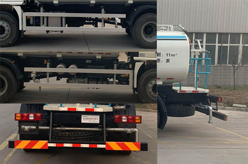 | 其他 | 罐体有效容积11立方米,介质:水,介质密度:1000千克/立方米,罐体外形尺寸(长×长轴×短轴)(mm):4800×2250×1470;侧防护材料材质为铝合金;后下部防护材料材质为 Q235,均采用螺栓连接,后下部防护尺寸:120×50(mm),离地面高度475mm;装有带卫星定位功能的行驶记录仪,ABS系统生产厂家及型号分别为:西安正昌电子有限责任公司(型号:ZQFB-V);整车长/前悬/轴距/后悬(mm)对应关系为:7990/1340/4500/2150,7990/1340/4700/1950,8390/1340/5100/1950;选装雾炮装置,选装罐体、后平台、水枪、箭头等.随底盘选装同系列驾驶室外观及筒式和箱式后处理;专用装置:罐体、高压水泵,主要用于路面洒水、冲洗、降雾抑尘等,该车型可选装ETC车载装置 | ||