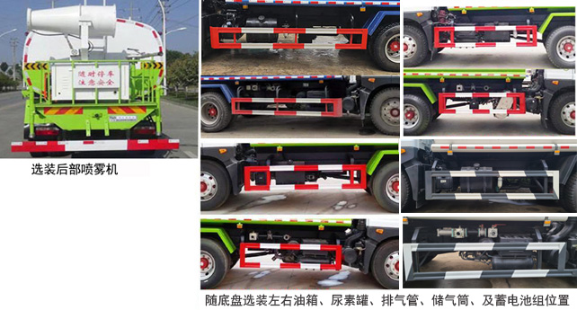 | 其他 | 罐体有效容积11.6立方米;运输介质:水,密度:1000千克/立方米;仅采用底盘3950mm,4500mm轴距;轴距/罐体外形尺寸(长×长轴×短轴)(mm)对应关系:3950/4350×2280×1480,4500/4950×2280×1480;随底盘选装左右油箱、尿素罐、排气管、储气筒及蓄电池组位置;选装后部带喷雾机结构;选装罐体不同外观,选装罐体两侧管道箱样式,选装LED箭头指示灯,选装后弧形喷雾装置,选装后部平台围栏结构,选装前喷鸭嘴样式,选装卷盘;ABS系统生产厂家,型号:焦作博瑞克控制技术有限公司,J ABS;侧面防护及后下部防护装置材料材质:Q235,连接方式:焊接加螺栓连接;后下部防护装置断面尺寸(宽×高):50×150(mm),离地高度:470mm;主要专用装置为罐体,用于洒水和园林绿化. | ||