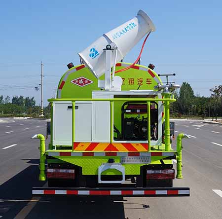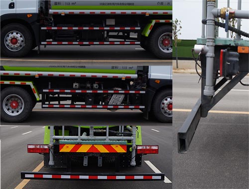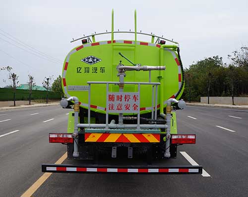 | 其他 | 选装后部雾炮型式。该车用于道路洒水或降尘,主要专用装置为罐体。罐体有效容积10.9立方米,运输介质:水,密度1000千克/每立方米。罐体外形尺寸为(长×宽×高)(mm):5200×2200×1300。侧防护采用Q345,螺栓连接;后防护采用Q345,焊接连接,防护截面尺寸(mm)120×50,下边缘离地高度480mm。ABS系统生产厂家,型号 :焦作博瑞克控制技术有限公司,J ABS。车长/轴距对应关系为:8480/4500,8680/4700,8980/5000。 | ||