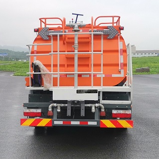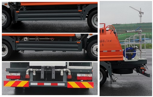 | 其他 | 1.车辆主要专用装置为罐体、水泵、水路系统和控制系统,主要用于城镇环境清洁、路面洒水降尘作业;2.罐体有效容积7.4立方米,罐体外形尺寸(长轴×短轴×长度)(mm):2000×1300×3856,装运介质为水溶液,介质密度为1000Kg/m3;3.侧防护装置材料:16MnREL,与车辆连接方式:螺栓连接;后防护装置材料:16MnREL,与车辆连接方式:螺栓连接,后防护断面尺寸:120mm×60mm,离地高度380mm;4.仅选用底盘3800mm轴距,随底盘安装ABS,型号:ABS/ASR-24V-4S/4M,生产厂家:襄阳东风隆诚机械有限责任公司,随底盘选装驾驶室;5.选装前自动洒水炮,选装时前伸为490mm,对应整车长度为7405mm;6.该车型可选装ETC车载装置. | ||