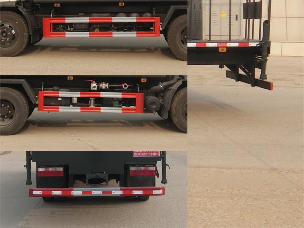 | 其他 | 随底盘选装前面罩,前保险杠,前组合灯具,前雾灯。侧防护采用冷弯型钢/Q235,螺栓连接。后防护采用冷弯型钢/Q235,焊接连接。后防护截面高度尺寸120mm,截面宽度尺寸50mm,下边缘离地高度500mm。采用3800轴距底盘,载质量与整备质量一一对应。ABS型号/厂家:ABS型号:ABS/ASR-24V-4S/4M,厂家:襄阳东风隆诚机械有限责任公司。该车用途为抑尘降霾,主要装置为水罐及喷雾装置。随底盘选装前面罩。随底盘选装驾驶室。随底盘选装驾驶室,选装车辆左右附件位置。罐体容积:7.42立方米。罐体尺寸(mm)为: 3800×2050×1380。 | ||