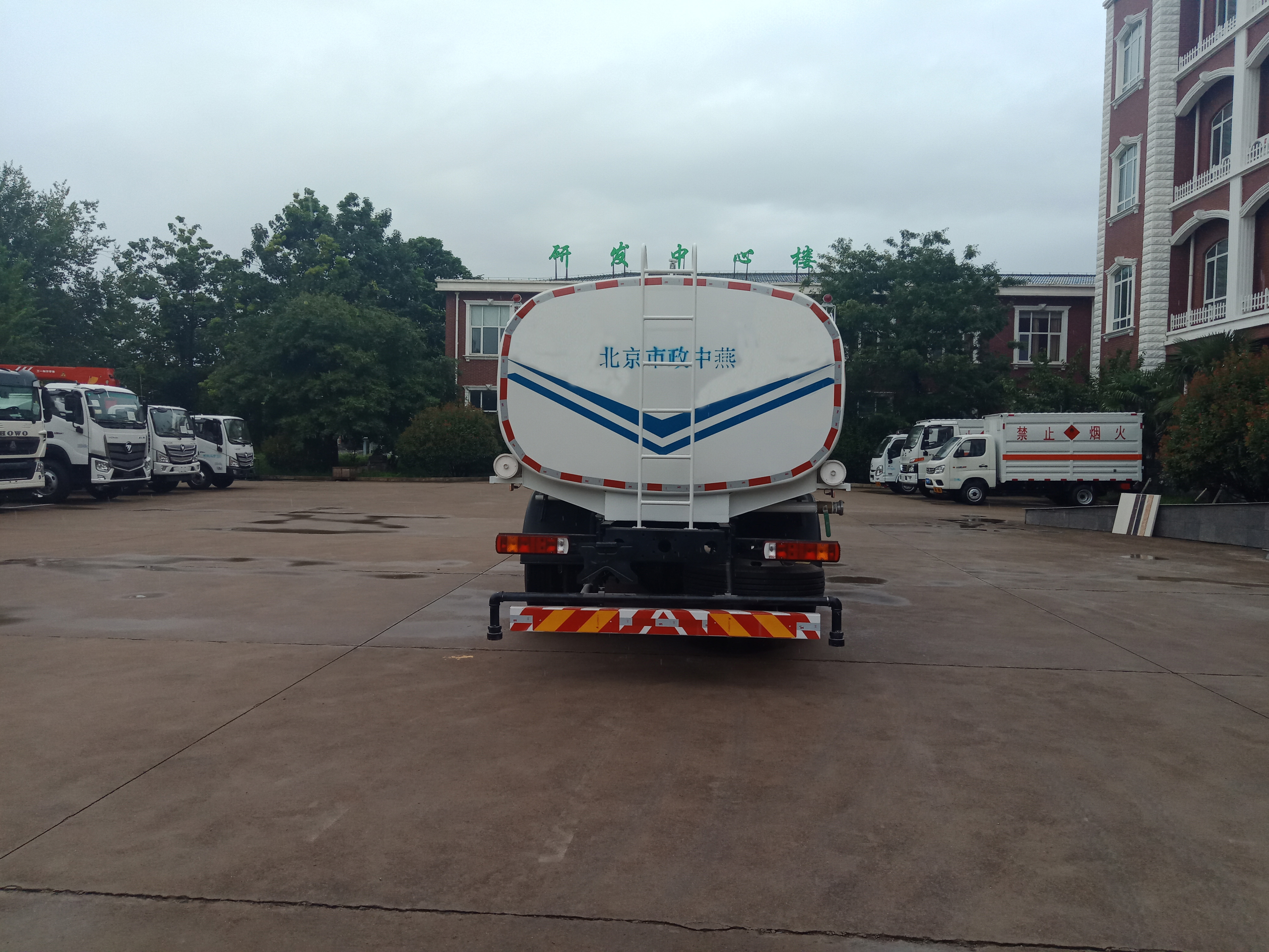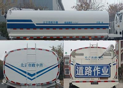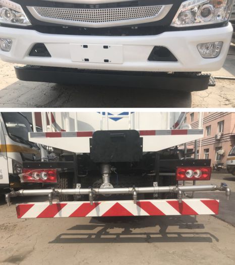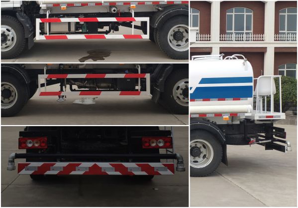 | 其他 | 选装不带前部喷鸭嘴,选装后部喷洒装置;罐体有效容积:6.9立方米,运输密度为1000千克/立方米的水,罐体外形尺寸(长×长轴×短轴)(mm):4250×1850×1250.选装前平台,道路作业牌,箭头指示灯.侧防护采用螺栓紧固于副梁上,后防护采用螺栓联接于纵梁上.截面尺寸为140x60mm,离地高度380mm.随底盘安装符合规定的具有卫星定位功能的行驶记录仪.ABS系统型号/生产企业对应关系:ABS-E/威伯科汽车控制系统(中国)有限公司;总长与后悬对应关系6950mm/1870mm,7070mm/1990mm | ||