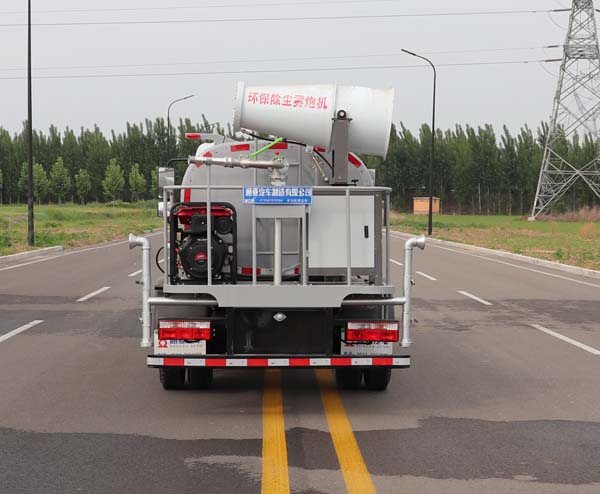 | 其他 | 加专用装置为抑尘雾炮,用于城市抑尘;仅采用3308mm轴距;罐体有效容积为3.98立方米,罐体截面形状:罐体尺寸(长×长轴×短轴)(mm):3300×1550×1100;侧后防护装置材料均为:Q235B,侧防护装置与车架连接方式为螺栓连接,后防护装置与车架连接方式为焊接,后防护装置截面尺寸为:100×50mm,离地高度400mm;ABS型号及生产厂家:ABS/ASR-12V-4S/4M/襄阳东风隆诚机械有限责任公司.随底盘选装驾驶室样式. | ||