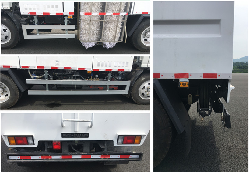 | 其他 | 1.该车专用装置为水箱与装在车身左侧的护栏清洗装置,主要用于对道路护栏等进行清洗作业;2.罐体有效容积3.6立方米,罐体外形尺寸(长×宽×高)(mm):1500×2065×1520,装运介质为水溶液,介质密度为1000Kg/m3;3.左右侧面防护装置材料:铝合金,左右侧面及后部连接方式:螺栓连接;后防护装置材料:Q235,连接方式:螺栓连接,后防护断面尺寸:140mm×50mm,离地高度500mm;4.蓄电池为磷酸铁锂锂离子动力蓄电池,生产企业:南京创源天地动力科技有限公司,单体型号/生产企业:LF105/惠州亿纬锂能股份有限公司;5.TZ205XS-NLZ型驱动电机峰值功率110kW、额定功率50kW,生产厂家:南京金龙客车制造有限公司;6.ABS型号:APG3550500H1,生产企业:浙江亚太机电股份有限公司. | ||