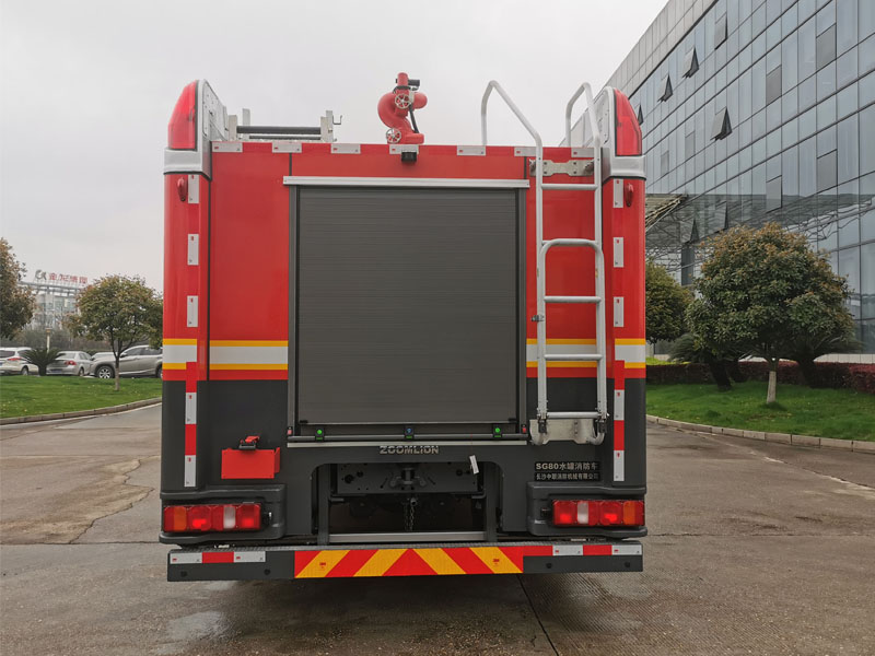 | 其他 | 水罐容积:8.0立方米,水罐尺寸:3230×2460×1040mm。整体式侧防护结构,后防护装置材料:Q345B,截面尺寸(高×宽):140×58mm,与车辆连接方式:螺栓连接,后防护离地高度:495mm。ABS生产企业为威伯科汽车控制系统(中国)有限公司,型号为4460046300。主要专用装置有消防泵、消防炮。 | ||