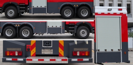 | 其他 | 罐体总容积为11.600立方米,水罐容积:9.500立方米,水罐尺寸:2950×2490×1350mm。整体式侧防护结构,后防护装置材料:Q235A,截面尺寸:80×120mm,与车辆连接方式:螺栓连接,后防护离地高度:445mm,ABS生产企业为威伯科(上海)管理有限公司,型号为4460046300。主要专用装置有消防泵、消防炮。 | ||