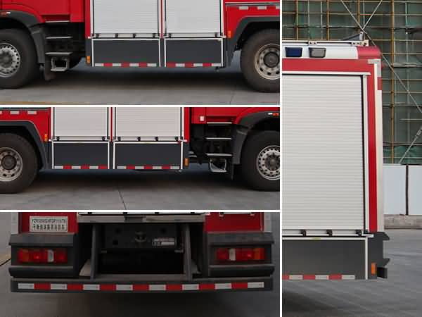 | 其他 | 罐体总容积为11.061立方米,水罐容积:6.100立方米,水罐尺寸:1655×2460×1570mm,泡沫液罐容积:1.961立方米,泡沫液罐尺寸:530×2460×1570mm,干粉罐容积:3.000立方米,干粉罐尺寸(直径×高):1828×1507mm.整体式侧防护结构,后防护装置材料:Q235A,截面尺寸(宽×高)(mm):60×120,与车辆连接方式:螺栓连接,后防护离地高度:500mm.ABS生产企业为威伯科(上海)管理有限公司,型号为4460046300.主要专用装置有消防泵、消防炮、干粉系统。 | ||