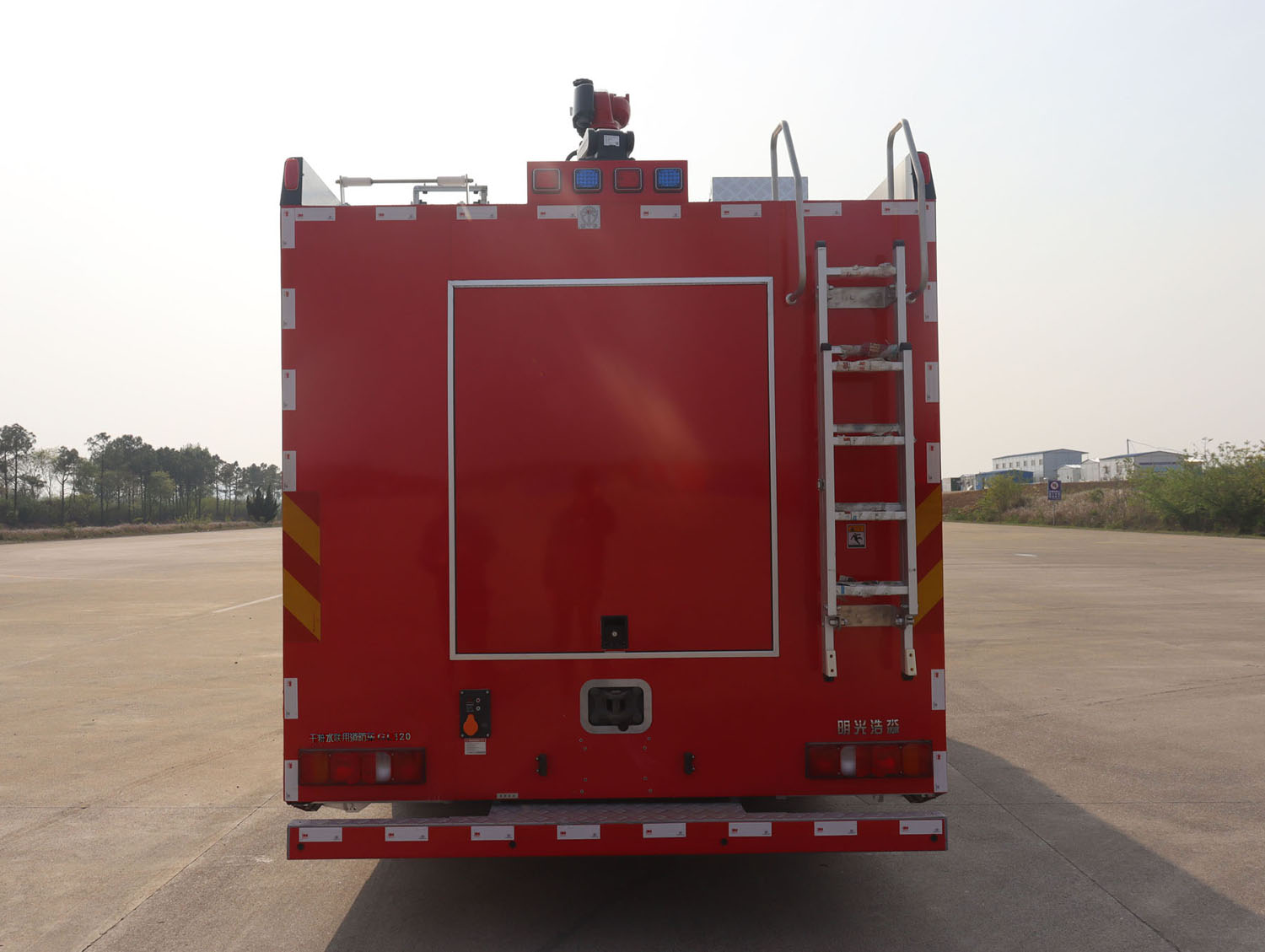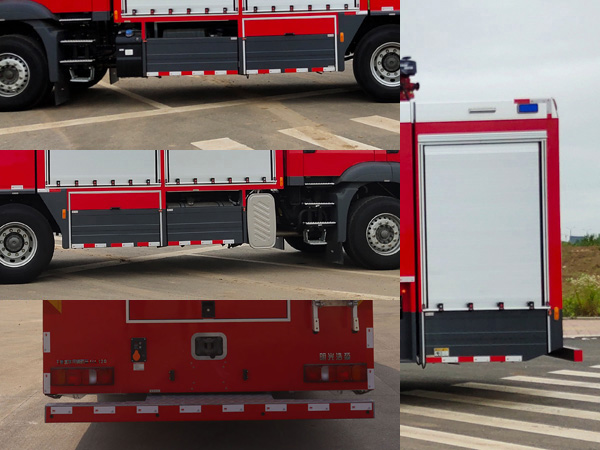 | 其他 | 罐体总容积为12.0立方米,水罐容积:9.0立方米,水罐尺寸:2625×2460×1460(mm),干粉罐容积:3.0立方米,干粉罐尺寸(直径×高):1828×1507(mm)。整体式侧防护结构,后防护装置材料:Q235A,截面尺寸:120×80(mm),与车辆连接方式:螺栓连接,后防护离地高度:450mm。ABS生产企业为威伯科汽车控制系统(中国)有限公司,型号为4460046300。主要专用装置有消防泵、消防炮、干粉系统。 | ||