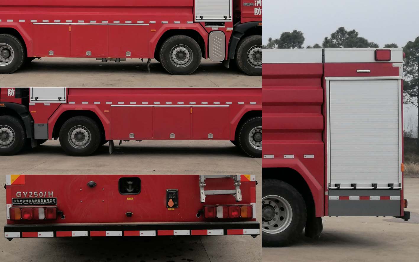 | 其他 | 罐体总容积为25.000立方米,泡沫液Ⅰ罐容积:16.350立方米,泡沫液Ⅰ罐尺寸:4800×2490×1420mm,泡沫液Ⅱ罐容积:8.650立方米,泡沫液Ⅱ罐尺寸:2545×2490×1420mm.整体式侧防护结构,后防护装置材料:Q235A,截面尺寸:80×120mm,与车辆连接方式:螺栓连接,后防护离地高度:500mm.ABS生产企业为威伯科(上海)管理有限公司,型号为4460046300.主要专用装置有供液泵. | ||
