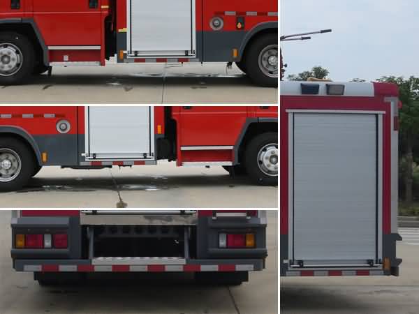 | 其他 | 罐体总容积为3.380立方米,水罐容积:2.400立方米,水罐尺寸:1000×2190×1150mm,泡沫液罐容积:0.980立方米,泡沫液罐尺寸:405×2190×1150mm。整体式侧防护结构,后防护装置材料:Q235A,截面尺寸:50×100mm,与车辆连接方式:螺栓连接,后防护离地高度:410mm,ABS生产企业为浙江亚太机电股份有限公司,型号为APG3550500H1。主要专用装置有消防泵、消防炮。 | ||
