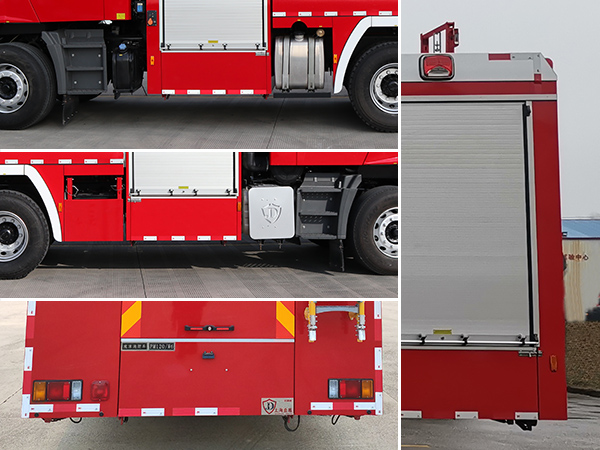 | 其他 | 罐体总容积为12.191立方米,水罐容积:9.250立方米,水罐尺寸:2710×2350×1520mm,泡沫液罐容积:2.941立方米,泡沫液罐尺寸:860×2350×1520mm.整体式侧后防护结构,后防护离地高度:495mm.ABS生产企业为浙江亚太机电股份有限公司,型号为APG3550500H1,主要专用装置有消防泵,消防炮. | ||
