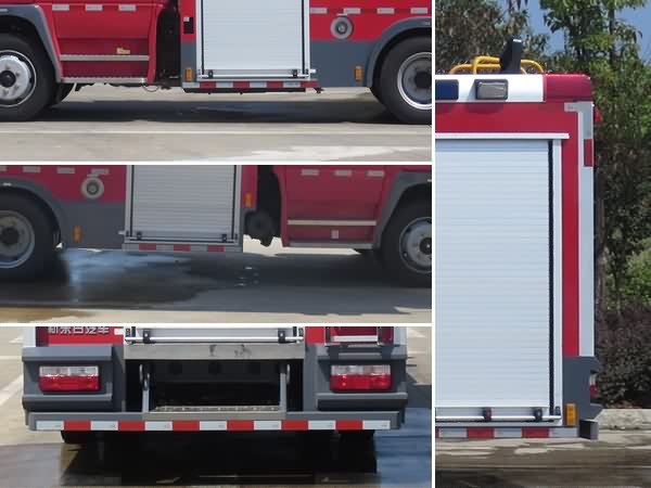 | 其他 | 随底盘选装驾驶室,罐体总容积为4.870立方米,水罐容积:3.350立方米,水罐尺寸:1400×2140×1170mm,泡沫液罐容积:1.520立方米,泡沫液罐尺寸:1225×1100×1170mm.整体式侧防护结构,后防护装置材料:Q235A,截面尺寸:50×100mm,与车辆连接方式:螺栓连接,后防护离地高度:390mm,ABS生产企业为襄阳东风隆诚机械有限责任公司,型号为ABS/ASR-24V-4S/4M.主要专用装置有消防泵、消防炮. | ||