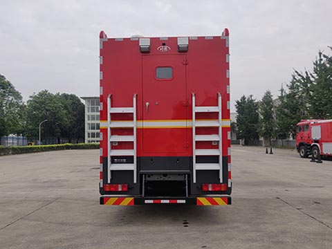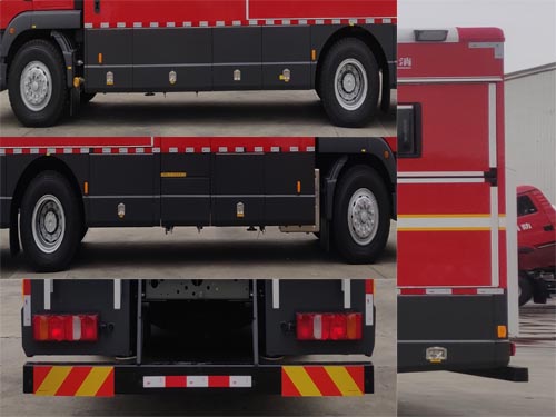| 其他 | 清水箱容积:1.350立方米,清水箱尺寸:1890×360×2050mm,污水箱容积:0.340立方米,污水箱尺寸:1200×500×580mm,两水箱不同时装载。整体式侧防护结构,后防护装置材料:Q235A,截面尺寸:140×80mm,与车辆连接方式:螺栓连接,后防护离地高度:390mm。ABS生产企业为威伯科(上海)管理有限公司,型号为4460046300。主要专用装置有各类消防器材共100件。 | ||