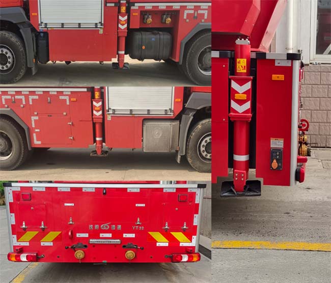 | 其他 | 罐体总容积:7.450立方米,水罐容积:5.200立方米,水罐尺寸:2010×2420×1120mm,泡沫液罐容积:2.250立方米,泡沫液罐尺寸:870×2420×1120mm.整体式侧后防护结构,后防护离地高度:477mm,前伸:1205mm,后伸:160mm.发动机最大净功率为315kW.该改装车为消防车.ABS生产企业为WABCO,型号为EB5006.主要专用装置有臂架,消防泵,消防炮. | ||