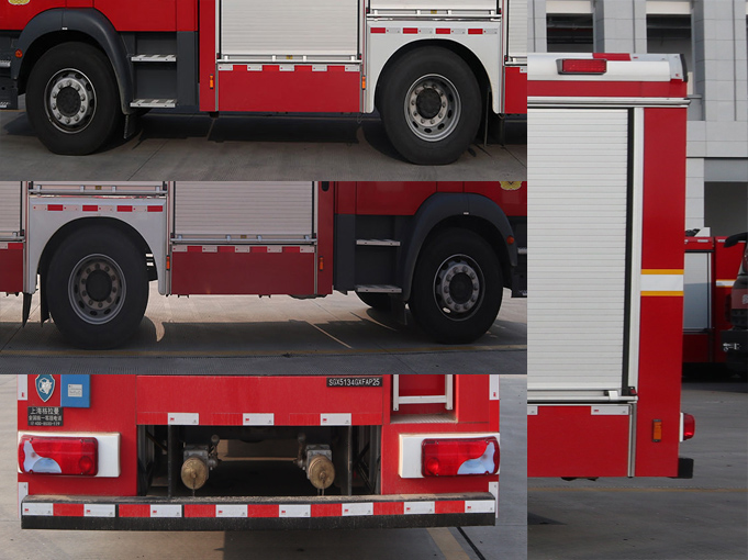 | 其他 | 罐体总容积为2.400立方米,水罐容积:2.000立方米,水罐尺寸:1220×1350×1260mm,A类泡沫液罐容积:0.400立方米,A类泡沫液罐尺寸:1220×620×550mm。整体式侧防护结构,后防护装置材料:Q235A,截面尺寸:60×120mm,与车辆连接方式:螺栓连接,后防护离地高度:455mm,前伸:110mm。EBS生产企业为WABCO,型号为480020XXX0。主要专用装置有压缩空气泡沫系统、照明系统。 | ||