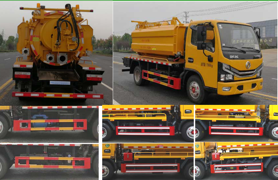 | 其他 | 选装前面罩以及前雾灯。选装卷帘门。罐体外形尺寸为: 罐体外形尺寸(直段长×直径)(mm):3200×1200(其中罐体前部1350mm为清水罐).污水罐载质量1360kg,罐体有效容积1.78立方米,运输介质:液态污物,密度800千克/每立方米.清水罐载质量1360kg,罐体有效容积1.42立方米,运输介质:水,密度1000千克/每立方米.侧防护采用Q235,螺栓连接。后防护采用Q235,焊接连接。后防护截面高度尺寸100mm,截面宽度尺寸50mm,下边缘离地高度340mm。ABS型号/厂家:ABS/ASR-12V-4S/4M/襄阳东风隆诚机械有限责任公司。清洗和吸污功能不同时使用,两罐不能同时装载。专用装置为罐体、高压泵、真空泵、管道系统,用于清洗吸污。采用3308mm轴距底盘。选装外观样式。选装驾驶室样式。 | ||