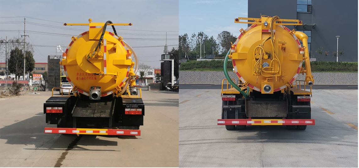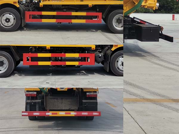 | 其他 | 随底盘选装前面罩,前保险杠,前组合灯具,前雾灯。罐体外形尺寸(直段长×直径)(mm):4000×1600(前部1000mm为清水罐,后部3000mm为污水罐)。污水罐载质量为4900kg,有效容积:5.7立方米;清水罐载质量为2500kg,有效容积:2.5立方米.清水罐和吸污罐为独立罐体,清洗功能时用水罐,吸污功能时用吸污罐, 污水罐和清水罐不可同时满载。侧防护采用冷弯型钢/Q235,螺栓连接。后防护采用冷弯型钢/Q235,焊接连接。后防护截面高度尺寸100mm,截面宽度尺寸50mm,下边缘离地高度430mm。采用3800轴距底盘.ABS型号/厂家:ABS型号:ABS/ASR-24V-4S/4M,厂家:襄阳东风隆诚机械有限责任公司。专用装置为罐体,高压泵等,主要用于清洗吸污。随底盘选装驾驶室。选装外观。选装外观。 | ||