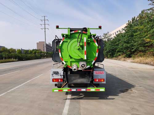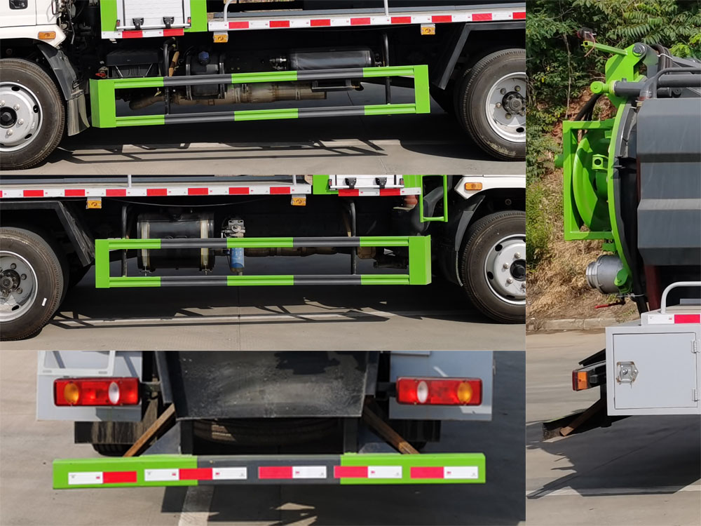 | 其他 | 该车专用装置主要为污水罐和清水罐,用于下水道吸污及疏通。罐体尺寸(直段长×直径)(mm):4500×1450,罐体前部为清水罐,罐体后部为污水罐,污水罐(直段长×直径)(mm):3500×1450,污水罐有效容积:5.7立方米;清水罐(直段长×直径)(mm):1000×1450,清水罐有效容积:1.4立方米;清水罐和吸污罐为两个独立罐体,清洗功能时用水罐,吸污功能时用吸污罐,清洗吸污两种功能不同时使用,两罐不能同时满载;防护材料:Q235A碳钢,连接方式:左右侧面采用螺栓连接,后下部防护采用焊接连接,后部防护断面尺寸(mm):120×50,后部防护离地高度(mm):410;随底盘选装驾驶室;ABS型号及生产厂家为:3631010-C2000/东科克诺尔商用车制动系统(十堰)有限公司,J ABS/焦作博瑞克控制技术有限公司。 | ||