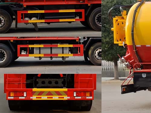 | 其他 | 随底盘选装驾驶室,选装副发动机罩,选装后盖结构样式及箭头灯;仅选用轴距(mm):1995+4600+1350;ABS生产厂家:东科克诺尔商用车制动系统(十堰)有限公司,型号:3631010-C2000;该车专用装置主要为污水罐和清水罐,用于下水道排污及疏通;罐体尺寸(直段长×直径)(mm):7100×2300,罐体前部为清水罐,后部为污水罐,污水罐(直段长×直径)(mm):3950×2300,污水罐有效容积:14.17立方米;清水罐(直段长×直径)(mm):3150×2300,清水罐有效容积:11.34立方米;清水罐和吸污罐为两个独立罐体,清洗功能时用水罐,吸污功能时用吸污罐,清洗吸污两种功能不同时使用,清水罐和吸污罐不能同时满载,该车罐体带有举升功能;侧防护和后防护材料Q235,侧防护螺栓连接,后防护焊接连接,后防护断面尺寸50×300mm,下边缘离地高500mm. | ||