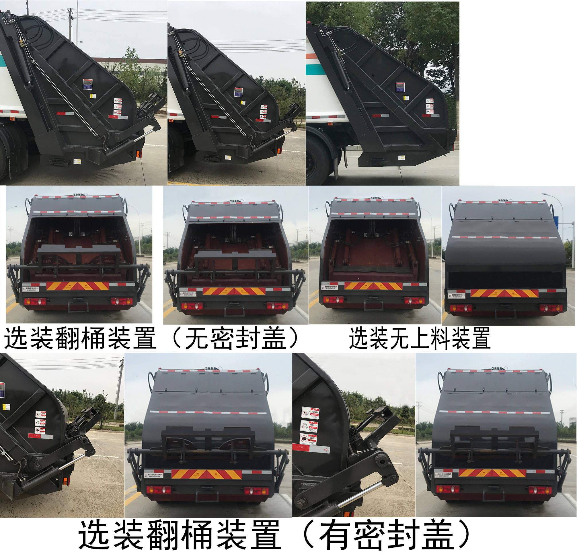 | 其他 | ABS型号:631010-C2000,ABS 8,4460046450;ABS生产企业:东科克诺尔商用车制动系统(十堰)有限公司,东科克诺尔商用车制动系统(十堰)有限公司,威伯科汽车控制系统(中国)有限公司;安装有具有卫星定位功能的行驶记录仪;选装描述:随底盘选装选装高度不同的驾驶室;选装前雾灯;选装驾驶室顶部装饰灯;选装驾驶室前面罩;选装前保险杠及前部灯具,选装后视镜;选装后部灯具;选装驾驶室前脸扰流罩;驾驶室卧铺侧窗选装装饰板.选装后部工作装置,选装后部无密封盖.该车型可选装ETC车载装置;发动机/油耗值(L/100km)对应关系为:DDi50E190-60/23.9,D4.5NS6B190/24.4,D6.7NS6B230/23.7,B6.2NS6B210/23.8,B6.2NS6B230/23.8;侧后防护情况:侧防护材料采用Q235,螺栓连接;后防护由专用装置替代,下边缘离地高:460mm;自卸方式为后卸式;专用功能及装置:该车主要专用装置由箱体、压缩系统组成,用于垃圾的收集与清运;;后伸尺寸:400mm;其他说明:选装工作装置时整车外形长/轴距/后伸对应关系为(mm):①无上料装置,摆臂装置,全密封斗装置:8660/45000,8860/4700/0;②翻桶装置,半密封斗装置:9060/4500/400,9260/4700/400。仅采用4500mm,4700mm轴距; | ||