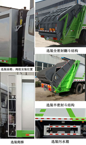 | 其他 | ABS型号:ABS-E 4S/4M,3631010-C2000;ABS生产企业:威伯科汽车控制系统(中国)有限公司,东科克诺尔商用车制动系统(十堰)有限公司;安装有具有卫星定位功能的行驶记录仪;选装描述:仅选轴距4500mm;选装液压油箱及阀组安装位置,选装爬梯,选装污水箱,因选装件引起的质量变化在3%以内;侧后防护情况:侧面防护装置同车架螺栓连接,材料为铝合金+Q235;后防护装置由工作装置代替,工作装置离地高度380mm;专用功能及装置:车辆装有垃圾箱体、填充器、后部上料装置;用于收集、转运垃圾作业;该车有三种配置,A(翻盖翻桶型);B(选装半密封斗装置);C(选装全密封斗装置);外形长(mm)/高(mm)/整备质量(kg)的对应关系为:配置A为9150/3200/11600;配置B为9080/3200/11700;配置C为8750/3170/11900;后伸尺寸:配置A时后伸500mm,配置B时后伸430mm,配置C时后伸为0;其他说明:随底盘选装侧窗,选装前雾灯,选装遮阳罩,选装前格栅造型及灯具,选装后尾灯,选装ETC车载装置; | ||