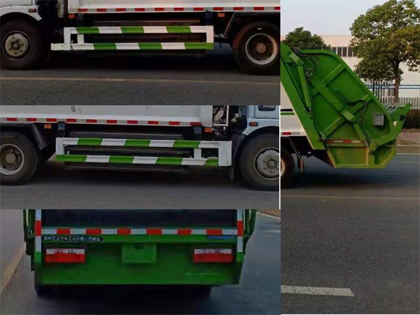 | 其他 | 1、防护材料:Q235碳钢,连接方式:左右侧面防护采用焊接连接在副梁上,后部防护由专用装置代替:外形长方体,长×宽×高(mm):2140×580×80,离地面高度380mm;2.该车装备有填装器、垃圾箱、翻转机构、推铲、液压系统等,用于城镇居民区、社区等区域的桶装、袋装和散装生活垃圾的收集和转运等作用;3.ABS型号/生产厂家:CM4XL-4S/4M/广州瑞立科密汽车电子股份有限公司;4.电池种类/型号/生产企业:磷酸铁锂电池/512V/310AH/江西星盈科技有限公司;5.驱动电机类型为交流永磁同步电机,电机额定功率:80kW,电机峰值功率:145kW,电机型号为:TZ290XSZ,控制器型号为:KTZ51X41S-01ZZ,电机及控制器的生产企业为:成都中车电机有限公司;可选装后摆臂装置和垃圾斗装置;7.后伸307mm,选装ETC装置 | ||