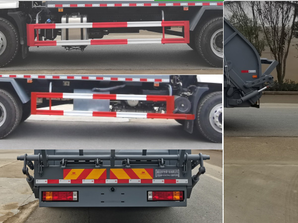 | 其他 | 随底盘选装驾驶室;采用4500mm,4700mm轴距底盘;该车主要专用装置由箱体,压缩系统组成,用于垃圾的收集与清运。侧防护采用Q235,螺栓连接;车辆后部为专用作业部位,车辆后部离地高500mm;ABS系统生产厂家:西安正昌电子股份有限公司,型号:ZQFB-V。该车安装具有卫星定位功能的行驶记录仪。发动机型号和油耗值对应关系(L/100km):YCK05240-60/26.65,YCK05210-60/26.65,YCS06245-60A/26.66。车辆长/轴距/前悬/后悬/后伸的对应关系为:9100/4700/1450/2550/400,8900/4700/1450/2550/200,8700/4700/1450/2550/0,8900/4500/1450/2550/400,8700/4500/1450/2550/200,8500/4500/1450/2550/0。额定载质量和整备质量及驾驶室准乘人数一一对应。选装ETC车载装置。选装外观及尾部上料结构样式。 | ||