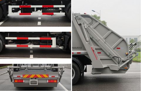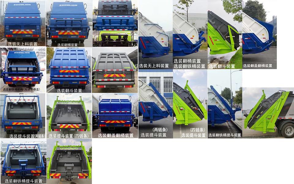 该车选用底盘4500mm轴距.该车通过垃圾箱,填装机构等装置,达到垃圾收集装填及推挤卸料的作业功能;该车有6种配置:A(无上料装置,基本型),B(选装翻桶装置),C(提斗型装置),D(选装翻斗装置),E(选装翻盖翻桶型装置),F(选装翻铁桶提斗装置).配置A时,整备质量9870kg,额定载质量7935kg;配置B时,整备质量10100kg,额定载质量7705kg;配置C,D,E时,整备质量10270kg,额定载质量7535kg;配置F时,整备质量10420kg,额定载质量7385kg;配置A时,整车长8500mm,后悬2740mm,整车高为3105mm(有垫木)或3070mm(无垫木);配置B时,整车长8860mm,后悬2740mm,后伸360mm,整车高为3105mm(有垫木)或3070mm(无垫木);配置C时,整车长8590mm,后悬2830mm,整车高为3105mm(有垫木)或3070mm(无垫木).配置D时,整车长8540mm,后悬2780mm,整车高为3105mm(有垫木)或3070mm(无垫木);配置E时,整车长8680mm,后悬2700mm,后伸220mm,整车高为3105mm(有垫木)或3070mm(无垫木);配置F时,整车长8860mm,后悬2700mm,后伸400mm,整车高为3170mm(有垫木)或3135mm(无垫木);.可选装四种后填装器盖,翻铁桶装置可选装无填装器盖,选装填装器下部外观,对尺寸,重量的变化可忽略不计;侧面防护装置的材料为Q235A,连接方式为螺栓连接;后防护装置由工作装置替代,工作装置离地高度为420mm;该车安装具有卫星定位功能的行驶记录仪;随底盘装B6.2NS6B210,D4.5NS6B220,D4.0NS6B195,YCS04200-68,CY4SK761,B6.2NS6B230,YCY30165-60发动机,对应的油耗值(L/100km)为26.3,26.6,26.6,26.4,26.8,26.1,26.5.随底盘选装驾驶室外观,随底盘装有ABS,ABS系统生产厂家,型号 :焦作博瑞克控制技术有限公司,J ABS;襄阳东风隆诚机械有限责任公司,ABS/ASR-24V-4S/4M;该车型可选装ETC车载装置. |