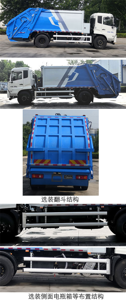 | 其他 | 1、该车仅采用4500mm轴距;该车安装翻桶机构,后伸为370mm,长度/前悬/后悬/轴距/后伸(单位mm)对应关系为9040/1430/2740/4500/370,9010/1400/2740/4500/370;2、该车后部选装密封翻斗结构,长度/前悬/后悬/轴距(单位mm)对应关系为8720/1430/2790/4500,8690/1400/2790/4500;3、防护装置所用材料材质为铝合金,侧防护装置连接方式为螺栓连接,后下部防护装置由专用装置替代,最大离地高度为410mm;4、发动机DDi50E190-60、D4.5NS6B190、D6.7NS6B230、B6.2NS6B210、B6.2NS6B230、DDi50E220-60、D4.0NS6B185对应的油耗值(L/100km)分别为23.9、24.4、23.7、23.8、23.8、25.1、24.9;5、随底盘,选装前雾灯;选装驾驶室顶部装饰灯;选装驾驶室前面罩;选装前保险杠及前部灯具,选装后视镜;选装后部灯具;选装驾驶室轮罩;驾驶室前脸扰流罩为选装件;驾驶室卧铺侧窗选装装饰板;选装不同结构的车门裙板;选装与车身颜色相同的前保险杠;6、安装具有卫星定位功能的行驶记录仪;7、随底盘,ABS型号/生产厂家:3631010-C2000/东科克诺尔商用车制动系统(十堰)有限公司,ABS 8/东科克诺尔商用车制动系统(十堰)有限公司,4460046450/威伯科汽车控制系统(中国)有限公司,J ABS/焦作博瑞克控制技术有限公司;8、随底盘,选装限速装置,限速89km/h;9、该车装备有垃圾箱、垃圾压缩装置、翻桶装置,用于生活垃圾的压缩转运;10、该车型可选装ETC车载装置;11、选装翻斗结构;12、选装侧面电瓶箱等布置结构. | ||