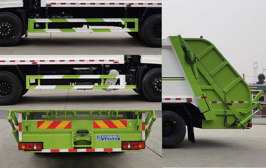 | 其他 | 1.此车型采用轴距:4500mm, 4700mm;2.该车主要专用装置由箱体、填装机构、压缩系统组成组成,用于垃圾的收集与清运.3.仅选用发动机与油耗值(L/100km)对应关系: DDi50E220-60/25.1L/km,DDi50E190-60/23.9L/km,B6.2NS6B230/23.8L/km,B6.2NS6B210/23.8L/km,D6.7NS6B230/23.7L/km,D4.5NS6B190/24.4L/km;4.防护材料:Q235碳钢,连接方式:左右侧面防护采用焊接连接,离地高度465mm,后部防护由专用装置代替,离地高度500mm;5.选装驾驶室;6.对应尺寸:总长(mm)=前悬(mm)+轴距(mm)+后悬(mm)+后伸(mm):9000=1400+4700+2500+400,8800=1400+4500+2500+400;8640=1400+4500+2740+0,8840=1400+4700+2740+0;7.ABS型号/生产厂家:3631010-C2000/东科克诺尔商用车制动系统(十堰)有限公司,ABS 8/东科克诺尔商用车制动系统(十堰)有限公司, 4460046450/威伯科汽车控制系统(中国)有限公司;J ABS/焦作博瑞克控制技术有限公司;8.安装有具有卫星定位功能的行驶记录仪,该车型可选装直接供电的ETC车载装置.选装后部装置,箱体外观 | ||