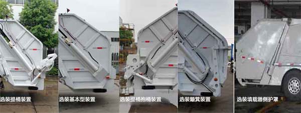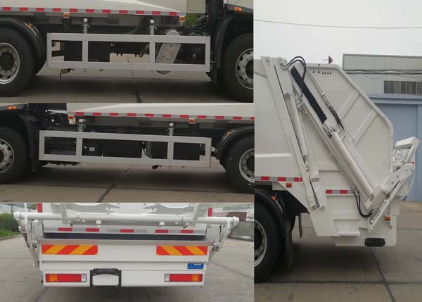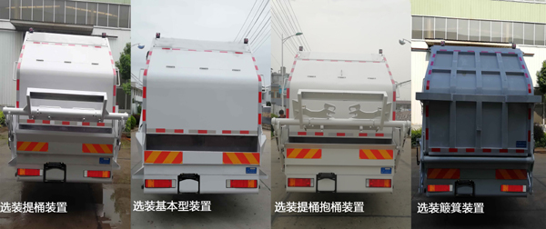 | 其他 | 侧防材质为铝合金,连接方式:螺栓连接。后防护由车辆后部结构代替,材料为Q345,离地高度为420 mm。ABS型号:ABS 8,4460046450,3631010-C2000;生产厂家分别为:东科克诺尔商用车制动系统(十堰)有限公司,威伯科汽车控制系统(中国)有限公司,东科克诺尔商用车制动系统(十堰)有限公司。随底盘选装前雾灯;选装驾驶室顶部装饰灯;选装驾驶室前面罩;选装前保险杠及前部灯具,选装后视镜;选装驾驶室轮罩;驾驶室前脸扰流罩为选装件;选装上车踏板型式。驾驶室卧铺侧窗选装装饰板.装配D4.5NS6B190、D6.7NS6B230、DDi50E190-60、B6.2NS6B210、B6.2NS6B230 为24.4L/KM、23.7L/KM、23.9L/KM、23.8L/KM、23.8L/KM.选装油箱安装位置;选装自动变速箱时仅选装D6.7NS6B230发动机。轴距选用4500mm。该车可有4种选装配置及这4种配置填塞器加装侧护罩,其总长/整备质量/载质量/后伸对应关系如下:选装基本型装置:8800/11050/6755/1620;选装提桶装置时: 9245/11450/6355/2065;选装提桶抱桶装置时:9245/11450/6355/2065;选装簸箕装置时:8915/11550/6255/1735。该车安装具有卫星定位功能的行驶记录仪。该车装备有垃圾箱体,液压装置及垃圾装填器,用于将垃圾自行压实装入,转运和卸料功能.选装簸箕装置时,选装不同的尾部标志板安装位置。随底盘选装驾驶室。选装ABS型号及厂家:J ABS/焦作博瑞克控制技术有限公司.选装直接供电ETC装置。 | ||