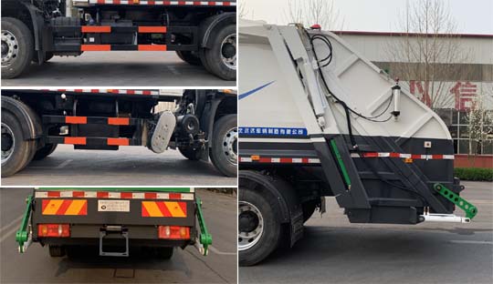 | 其他 | 该车选用轴距4500mm;用途:垃圾压缩,专用装置:液压装置;侧防护装置材料材质为Q235,与车架采用螺栓连接;后部防护装置与专用装置相干涉,后部离地高度为480mm;选装带挂桶装置时后伸量为400mm,对应长度为9210mm.ABS型号/生产厂家:3631010-C2000/东科克诺尔商用车制动系统(十堰)有限公司,ABS 8/东科克诺尔商用车制动系统(十堰)有限公司, 4460046450/威伯科汽车控制系统(中国)有限公司,J ABS/焦作博瑞克控制技术有限公司;该车安装具有卫星定位功能的行驶记录仪.选用D4.5NS6B190发动机时油耗值为24.4L/100km,选用D6.7NS6B230发动机时油耗值为23.7L/100km,选用DDi50E190-60发动机时油耗值为23.9L/100km,选用B6.2NS6B210发动机时油耗值为23.8L/100km,选用B6.2NS6B230发动机时油耗值为23.8L/100km.选装驾驶室,选装后部照片. | ||