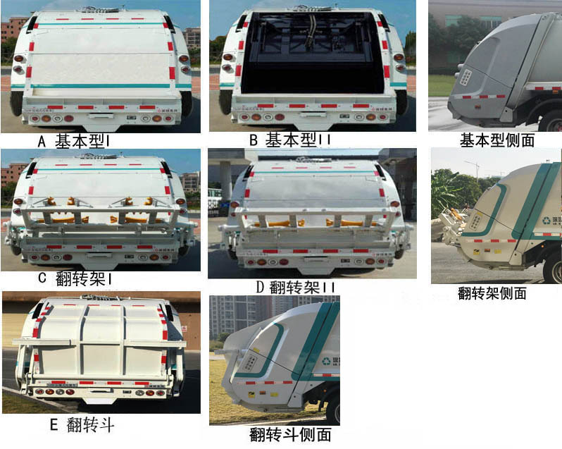 | 其他 | 该车通过垃圾箱,填装机构等装置,达到垃圾收集装填及推挤卸料的作业功能。随底盘选装驾驶室。随底盘选装排气管,电瓶,油箱位置。选用3308轴距。随底盘装CA4DB1-11E6,CY4BK161,CY4BK461,D20TCIF1,YCY24140-60,ZD30D16-6N,Q23-115E60发动机,对应的油耗值(L/100km)均为16.2;发动机Q28-130E60对应的油耗值(L/100km)为16.3。选装尾部专用装置:A(基本型I)、B(基本型II)、C(翻转架I)、D(翻转架II)、E(翻转斗),选装尾部专用装置时外廓尺寸长/后伸/整备质量的参数对应关系为:A或B-6465/0/4900;C或D-6865/400/5200;E-6620/155/5200。专用装置C、D、E的整备质量还可为5300kg。侧防护装置的材料为铝合金,连接方式为螺栓连接;后工作装置充当后防护装置的最大离地高度为385mm。随底盘安装的ABS型号/厂家:ABS/ASR-12V-4S/4M/襄阳东风隆诚机械有限责任公司。该车可选装直接供电式ETC车载装置。 | ||
