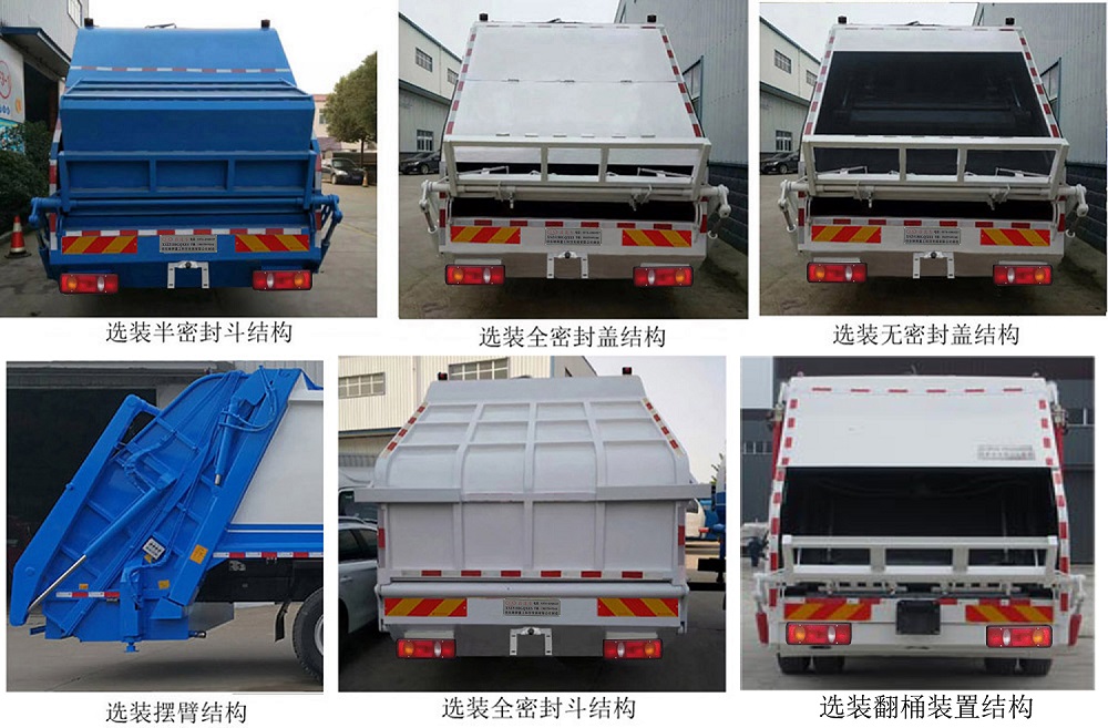 | 其他 | 1,该车选用4700mm,4500mm轴距,2.选装不同车厢结构和工作装置,不同工作装置包括半密封斗结构,全密封盖结构,无密封盖结构,摆臂结构,全密封斗结构,翻桶装置结构。外形长/轴距/后悬/前悬对应关系为(mm):8190/4500/2290/1400,8390/4700/2290/1400,8540/4500/2640/1400,8740/4700/2640/1400,8650/4500/2750/1400,8850/4700/2750/1400,8220/4500/2290/1430,8420/4700/2290/1430,8570/4500/2640/1430,8770/4700/2640/1430,8680/4500/2750/1430,8880/4700/2750/1430.3,侧防护材料材质:铝合金,与副车架采用螺栓连接; 后防护由专用装置替代,下边缘离地高:430mm.4,ABS型号/生产厂家:3631010-C2000/东科克诺尔商用车制动系统(十堰)有限公司,ABS 8/东科克诺尔商用车制动系统(十堰)有限公司,4460046450/威伯科汽车控制系统(中国)有限公司,J ABS/焦作博瑞克控制技术有限公司.5.随底盘选装驾驶室,该车安装具有卫星定位功能的行驶记录仪,随底盘装D6.7NS6B230,D4.5NS6B190,DDi50E190-60发动机,对应的油耗值(L/100km)为23.7,24.4,23.9。 6,该车专用作业装置:压缩系统,箱体,能将垃圾自行压实装入、转运和卸料. | ||