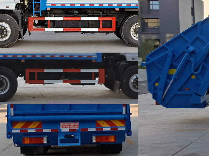 | 其他 | 底盘选装驾驶室,选装箱体外观;选装后部装料机构;仅选用轴距(mm):4350+1350;整车长/轴距/前悬/后悬的对应关系为(mm):10500/4350+1350/1515/3285,10400/4350+1350/1515/3185,10200/4350+1350/1515/2985,10500/4350+1350/1475/3325,10400/4350+1350/1475/3225,10200/4350+1350/1475/3025;侧防护材料Q235,螺栓连接,后部防护由专用装置代替,下边缘离地高490mm;ABS生产厂家:东科克诺尔商用车制动系统(十堰)有限公司,浙江万安科技股份有限公司,型号:3631010-C2000, VIE ABS-Ⅱ;该车安装具有卫星定位功能的行驶记录仪;发动机与油耗值对应关系为(L/100km):B6.2NS6B230,B6.2NS6B260,YCS06245-60,YCS06270-60:29.9,30.1,30.3,31.1;该车专用装置为箱体及压缩机构,用于城市环卫垃圾压缩及运输. | ||