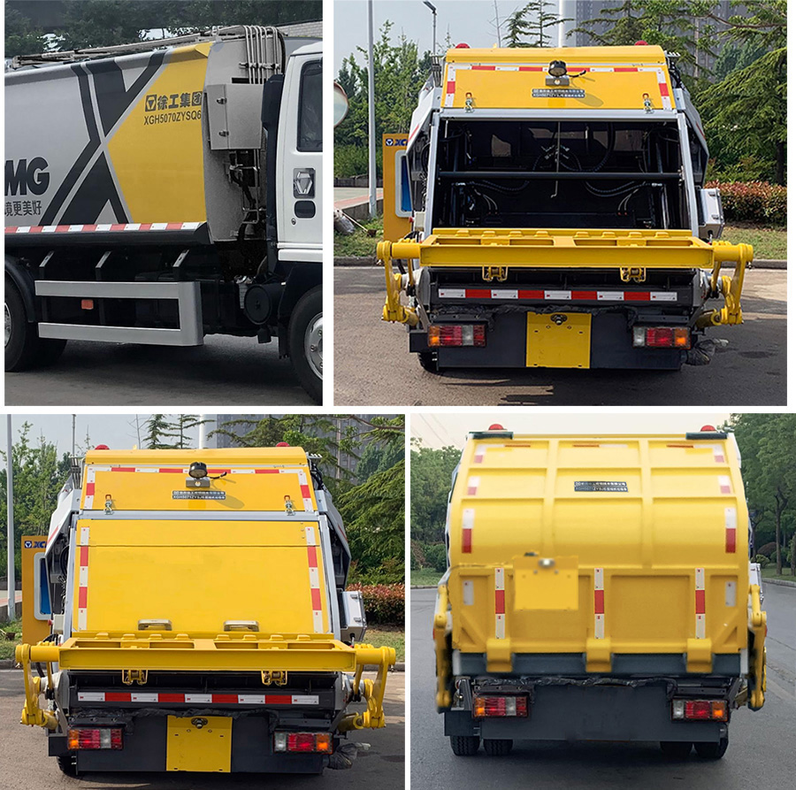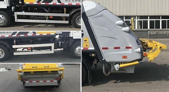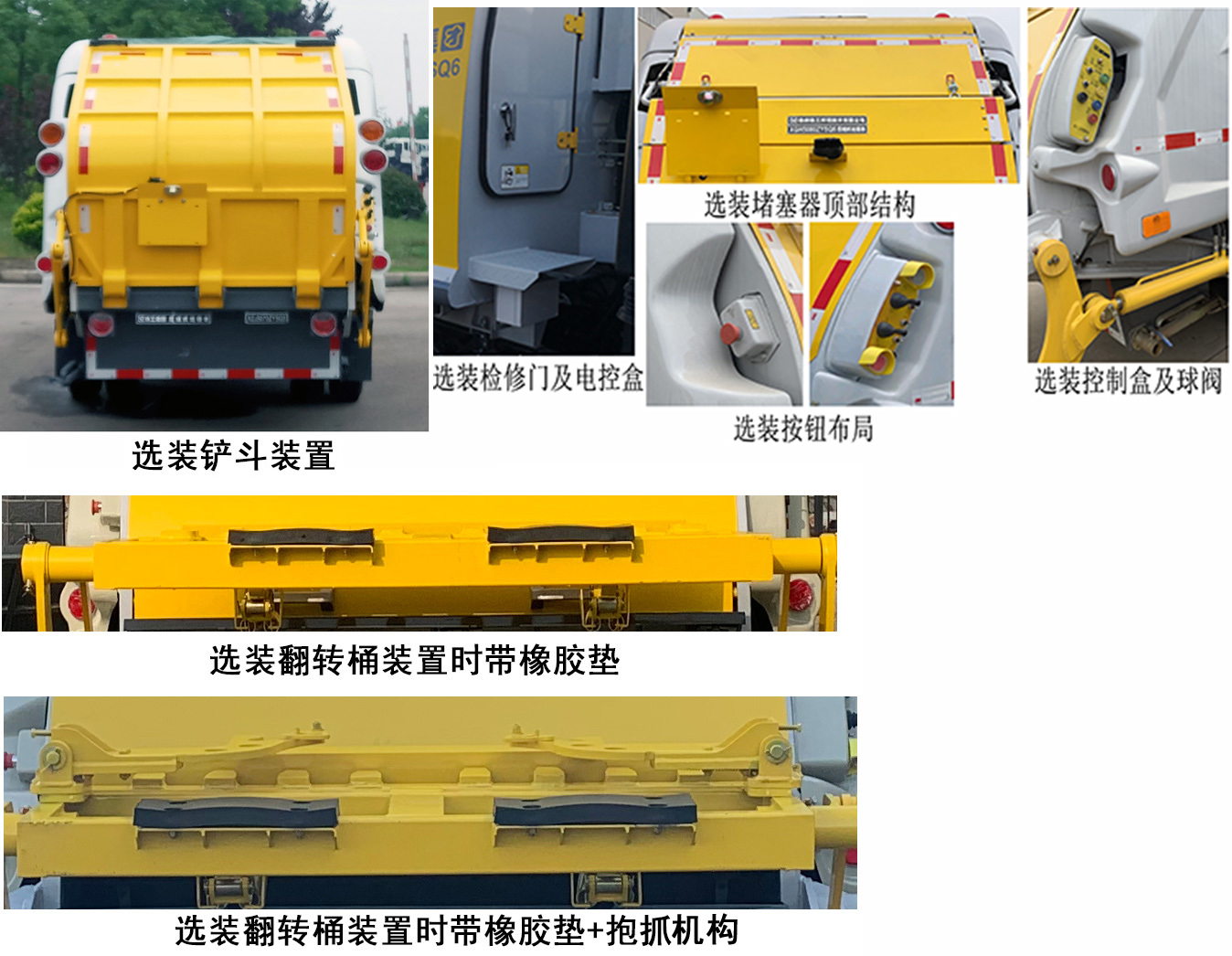 该车主要用于生活垃圾的压缩转运,专用装置为垃圾压缩装置.装翻转桶装置,其外形尺寸长为6950mm,宽1920mm,高2315mm,后伸610mm,整备质量为5300kg,额定载质量为1870kg;装铲斗装置时,其外形尺寸长为6620mm,宽1920mm,高2315mm,后伸280mm,整备质量5250kg,额定载质量1920kg;侧防护材料:铝合金,连接方式为:螺栓连接;后防护为专用装置替代,离地高度为290mm.装侧提桶机构时,外形尺寸长为5590mm,宽为1960mm,高为2615mm,整备质量为4400kg,额定载质量为2770kg;侧防护材料:铝合金,连接方式为:螺栓连接;后防护材料为Q345B,截面尺寸100×50mm,离地高度为405mm,连接方式为:螺栓连接.4KH1CN6LB发动机油耗:15.9 L/100km;ABS及其控制器型号/生产企业对应关系为:APG3550500A/浙江亚太机电股份有限公司,CM4YL/广州瑞立科密汽车电子股份有限公司;随底盘选装一种仅变化前面板、前格栅、前组合灯具的驾驶室;选装后视镜款式;选装前部标牌“4K ENGING/NJR/NHR/NKR/100P”.选装简版造型(不带护罩,不带后门板或带后门板),选装电控箱位置和液压管位置,选装尾部灯具,选装翻转桶型式牌照板安装位置.该车型可选装ETC车载装置.选装翻转桶装置时带橡胶垫,选装翻转桶装置时带橡胶垫加抱抓机构. |