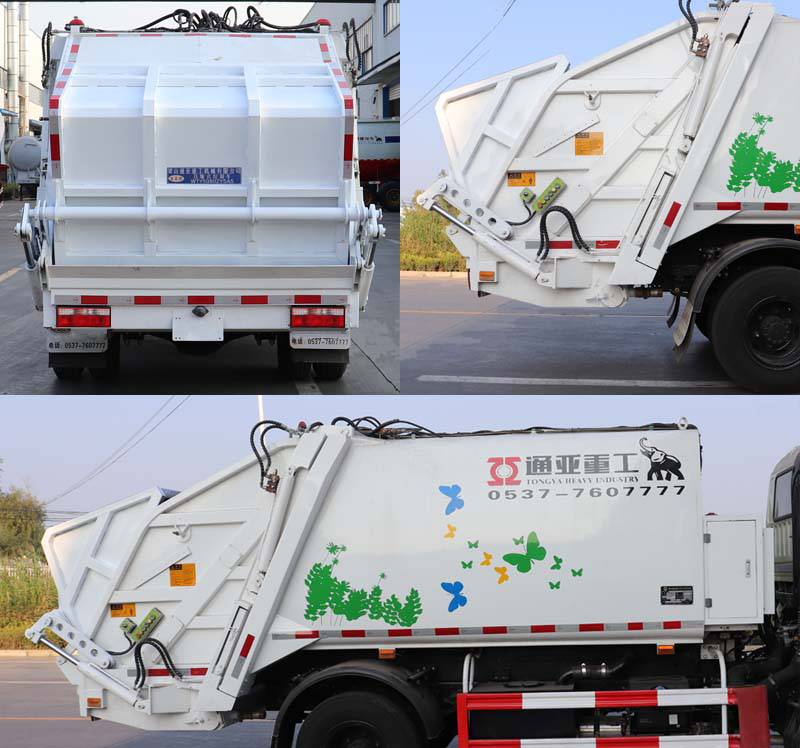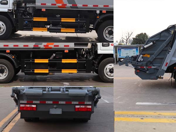 | 其他 | 该车装备有垃圾箱体及垃圾装填器,用于将垃圾自行装入压缩、转运和卸料;该车选装三种装置,A翻桶装置:外形尺寸为6860×2170×2620(mm),后伸量为420mm,整备质量5760kg;B簸箕斗装置:外形尺寸为6620×2170×2620(mm),后伸量为180mm,整备质量6060kg;C轻量化上装配置:外形尺寸为7000×2050×2450(mm),后伸量为700mm,整备质量5520kg.侧防护装置材料为Q235,侧防护装置与车架连接方式为螺栓连接,后下部防护为车辆部件代替,部件离地高度380mm;ABS型号及生产厂家:ABS/ASR-12V-4S/4M/襄阳东风隆诚机械有限责任公司;发动机与油耗值(L/100km)的对应关系为:CY4BK461/16.2,D20TCIF1/16.2,YCY24140-60/16.2,CA4DB1-11E6/16.2,ZD30D16-6N/16.2,CY4BK161/16.2, H20-120E60/14.9,Q23-115E60/14.5,CA4DB1-13E6/16.2.随底盘选装驾驶室样式. | ||