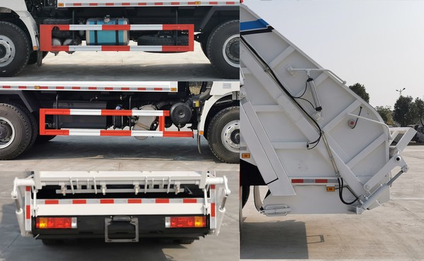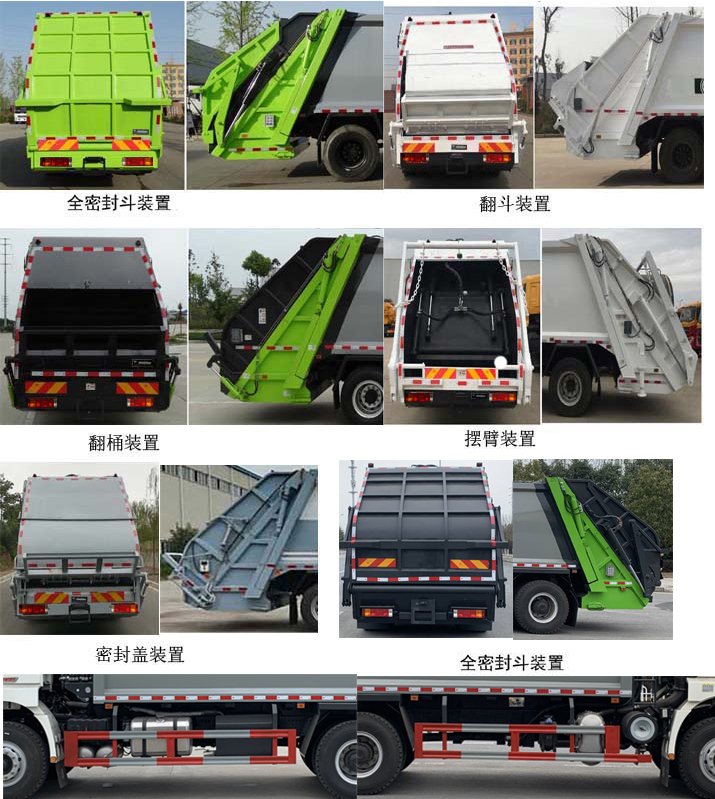 | 其他 | 1.该车装备有垃圾厢体,液压机构,后上料装置,用以收集,处理,转运垃圾作业,该车配置挂桶式提升机构.2.随底盘选装同系列驾驶室,选装驾驶室前围,前保险杠外观,脚踏板外观,轮罩外观,选装前部灯具,选装后视镜,选装外围布置,车架尾部外观.3.该车侧后防护材料材质为Q235,侧防护连接方式为螺栓连接,后防护由专用作业装置代替,离地高460mm;选侧面防护装置外观.4.安装具有卫星定位功能的行驶记录仪.5.ABS系统生产厂家:西安正昌电子股份有限公司,型号:ZQFB-V.6.发动机/油耗值(L/100km)对应关系为:YCK08300-60/32.4;YCK08350-60/32.4;7.选装专用装置后部外观.8.该车仅选装轴距(mm):4375+1350,4375+1400,4575+1400,4575+1350. | ||