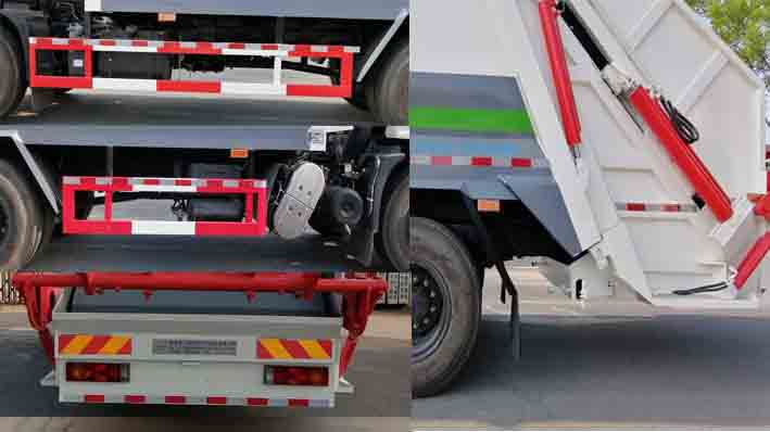 | 其他 | 该车选装全密封盖结构,选装全密封盖结构;选装A专用装置结构,选装B专用装置结构。侧防护材料为Q235A,与结构件采用螺栓连接;后防护由专用装置代替,离地高度475mm。该车仅选用4500mm,3950mm轴距。整车长度/前悬/轴距/后悬/后伸(mm)对应关系为:9550/1440/4500/2910/700(mm)。选装A时,8850/1440/4500/2910/0(mm);选装B时,9390/1440/4500/2910/540(mm),选装C时,8100/1440/3950/2600/110(mm),选装D时,8760/1440/4500/2360/460(mm)。选装发动机型号为:B6.2NS6B210,D6.2NS6B210,YCS04200-68;对应油耗值分别为25.9L/100km,25.9L/100km,25.8L/100km;最大净功率依次为151kw,151kw,143kw.ABS型号/生产厂家:3631010-C2000/东科克诺尔商用车制动系统(十堰)有限公司,ABS-E 4S/4M/生产厂为威伯科汽车控制系统(中国)有限公司,该车安装具有卫星定位功能的行驶记录仪;选装ETC | ||