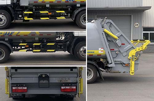| 其他 | ABS型号:CM4XL-4S/4M,VIE ABS-II;ABS生产企业:广州瑞立科密汽车电子股份有限公司,浙江万安科技股份有限公司,选装描述:选装翻桶装置时,长6750mm,后悬1995mm,后伸340mm,整备质量5495kg;选装铲斗装置时,长6630mm,后悬2055mm,后伸160mm,整备质量5695kg;选装填塞器盖板开关位置;填塞器盖板为选装件;随底盘选装排半驾驶室,选装新前脸驾驶室.选装新结构的保险杠;该车可选装ETC车载装置;发动机/油耗值(L/100km)对应关系为:WP2.3NQ130E61/15.32,H20-120E60/12.72;侧后防护情况:侧防护材料为Q235B,连接方式螺栓连接;后防护为专用装置替代,离地高度360mm;专用功能及装置:该车装备有垃圾箱体,液压机构及垃圾装填器,用于垃圾收集、转运等工作;后伸尺寸:340mm,160mm; | ||