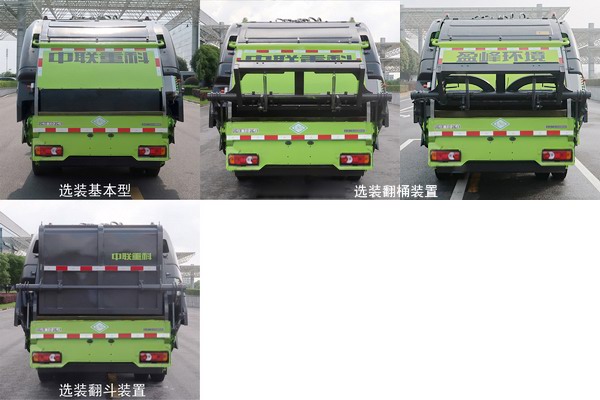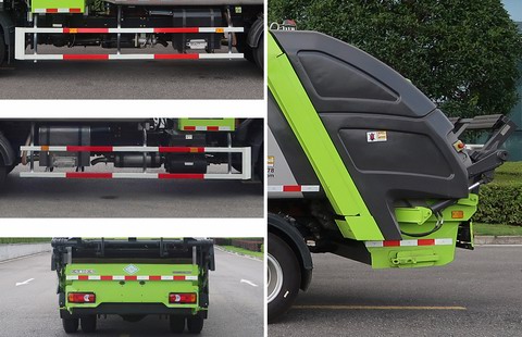 | 其他 | 该车选用4200mm底盘轴距; 该车通过垃圾箱,填装机构等装置,达到垃圾收集装填及推挤卸料的作业功能;该车有3种配置:A(基本型),B(选装翻桶装置),C(选装翻斗装置) ,配置A时,整备质量6485kg,额定载质量1520kg;配置B时,整备质量6680kg,额定载质量1325kg;配置C时,整备质量6750kg,额定载质量1255kg;配置A时,整车长7430mm,后悬2060mm;配置B时,整车长7825mm,后悬2060mm,后伸395mm;配置C时,整车长7470mm,后悬2060mm,后伸40mm;侧面防护装置的材料为Q235A,连接方式为螺栓连接;后防护装置由工作装置替代,工作装置离地高度为440mm;随底盘装有ABS,ABS型号:VIE ABS-Ⅱ,ABS生产企业:浙江万安科技股份有限公司.该车型可选装ETC车载装置. | ||